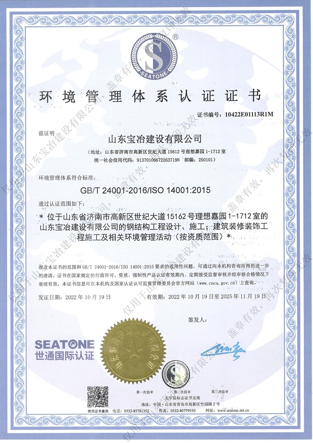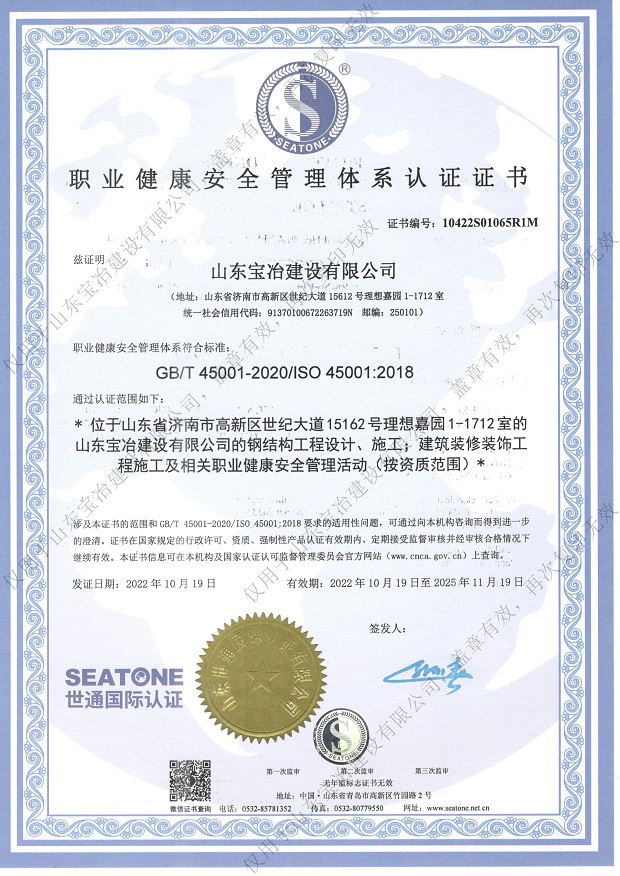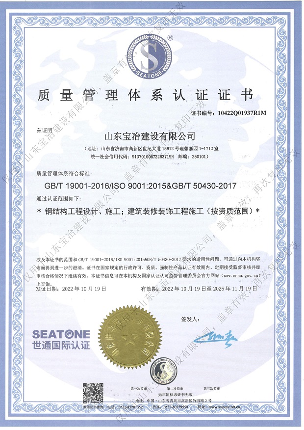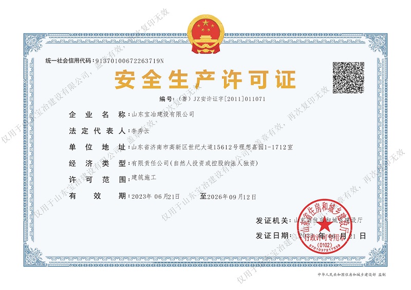 山東寶冶建設有限公司地處山東省濟南市高新技術開發區。經過多年的發展,現已具備建筑施工總承包、電力工程施工總承包、承裝(修、試)電力設施專業承包、鋼結構工程專業承包、特種工程(結構補強)專業承包、建筑裝修裝飾工程專業承包、建筑機電安裝工程專業承包、建筑幕墻工程專業承包、消防設施工程專業承包、防水防腐保溫工程專業承包、輕型鋼結構工程設計專項資質,可承接上述資質承攬范圍內的工程設計與施工。